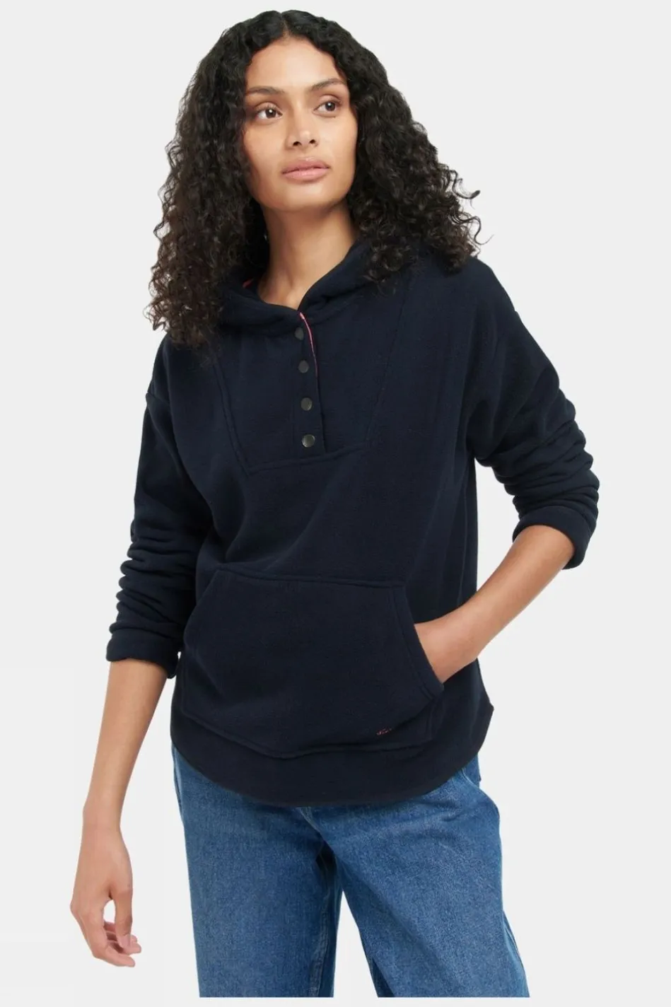 Super-Soft With A Relaxed Fit, The Women’s Adria Hoodie From Barbour Is Just As Good Out Walking The Dog, As It Is Curled Up On The Sofa With A Book. Made From Fully Recycled Polyester, This Cozy Feece Features A Kangaroo Pocket At The Front, Branded Buttons At The Neck And A Woven Barbour Label And Embroidery For Style.