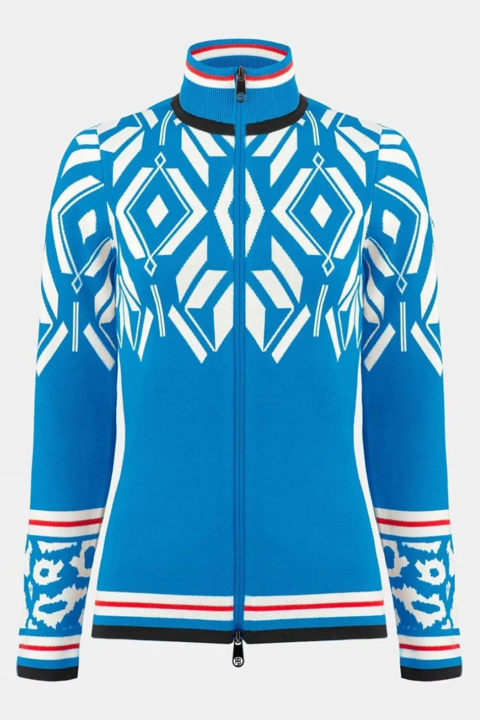 The Geometrical And Panther Print Design Of The Womens Henrietta Knitjacket Makes A Striking Fashion Statement With Sporty Poivre Blanc Character. Contrasting Stripes And A Distinctive Ribbed Collar Complement Its Dynamic Flair. The Temperature Regulating Properties Of The High-Quality Wool Make The Jacket A Perfect Autumn-Winter City Or Ski Resort Piece.