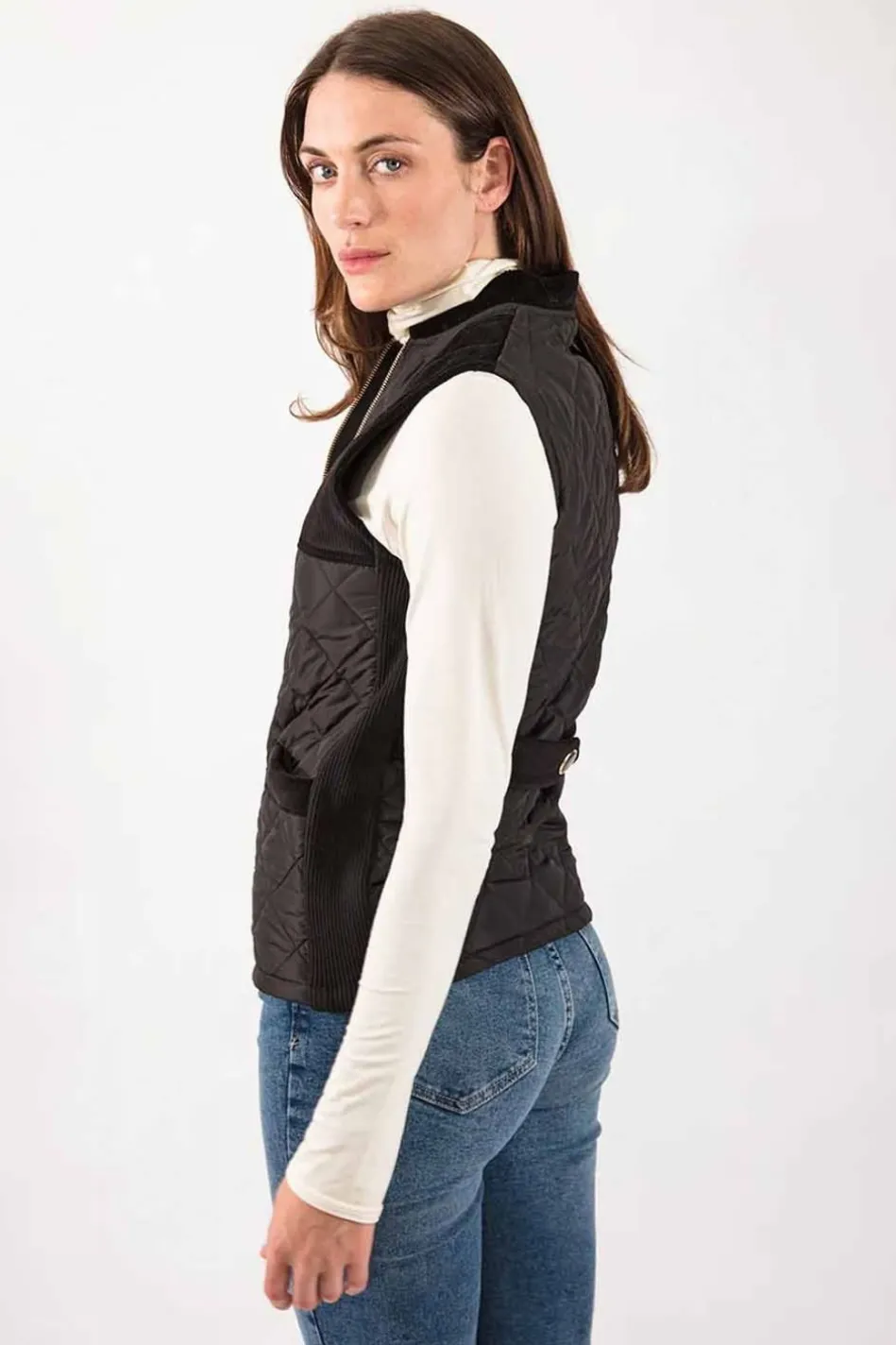 A Chic Update On The Classic Quilted Gilet By Troy London, With Gold Highlights In The Two-Way Zip, Neck Chain And Troy Branded Pocket Bar. Soft Cotton Corduroy Shoulder And Pocket Patches And Stretch Side Panels Provide Added Comfort And Soften The Sleek Quilted Exterior.
