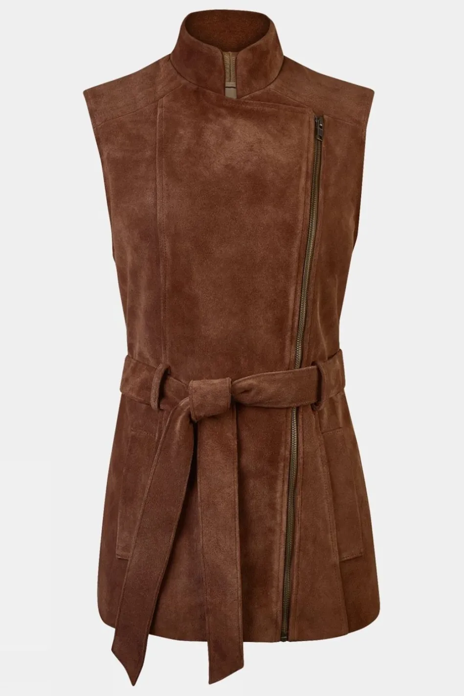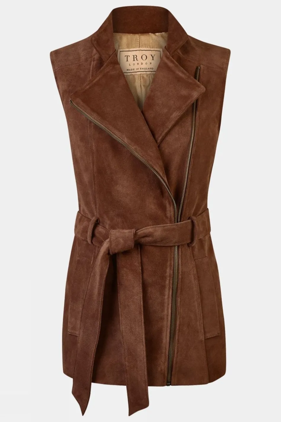 The Troy London Women’s Belted Suede Gilet Is Made From The Softest Italian Suede With The Addition Of A Sustainable Cotton And Viscose Lining For All-Day Warmth And Unbeatablestyle. Secured With A Two-Way Brass Zip And Tied Neatly Around The Waist For A Flattering Silhouette, This Jacket Demands To Be Seen, Be It On City Streets Or Blustery Hills. The Collar Can Be Folded Down Forthe Versatility Of Aflattering V-Neck, And Pulled Up When The Wind Starts To Pick Up To Keep Warmth In. Handmade In Britain, Make This Flattering Gilet Your New Cold-Weather Staple.