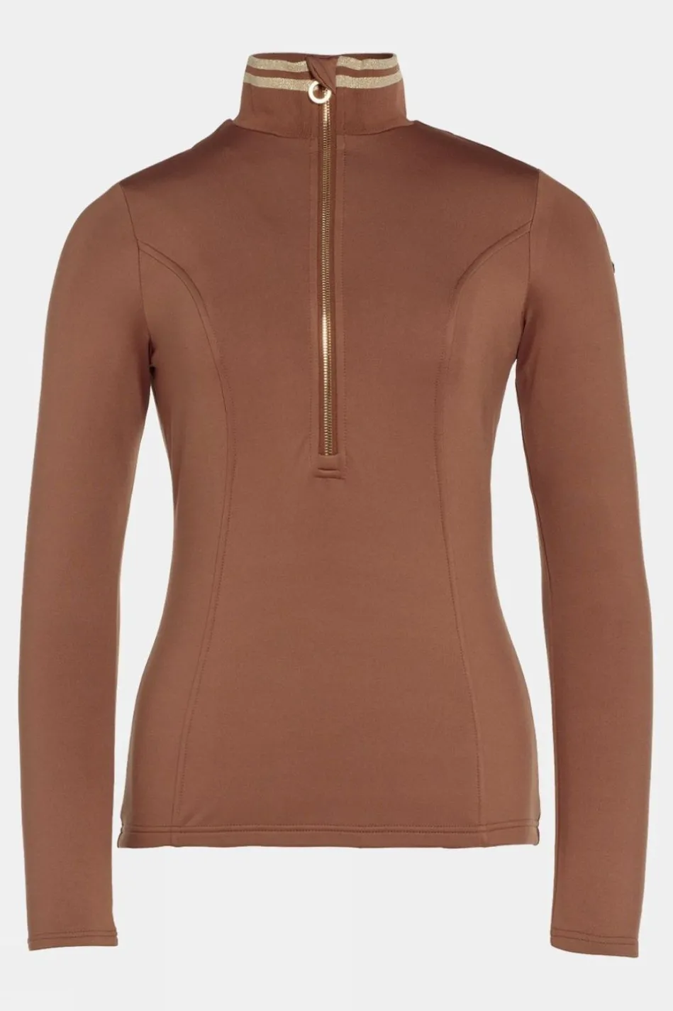 Introducing The Diane Ski Pull Top, A Sleek And Form-Fitting Garment Designed To Elevate Your Skiing Experience. Crafted From Stretch Jersey Fabric, This Pullover Boasts A Luxuriously Soft Brushed Back That Not Only Keeps You Warm But Also Ensures Your Comfort Throughout Your Outdoor Adventures. Its Close-Fitting Collar Features An Elegant Golden Lurex Stripe Detail, Adding A Touch Of Style To Your Winter Wardrobe.