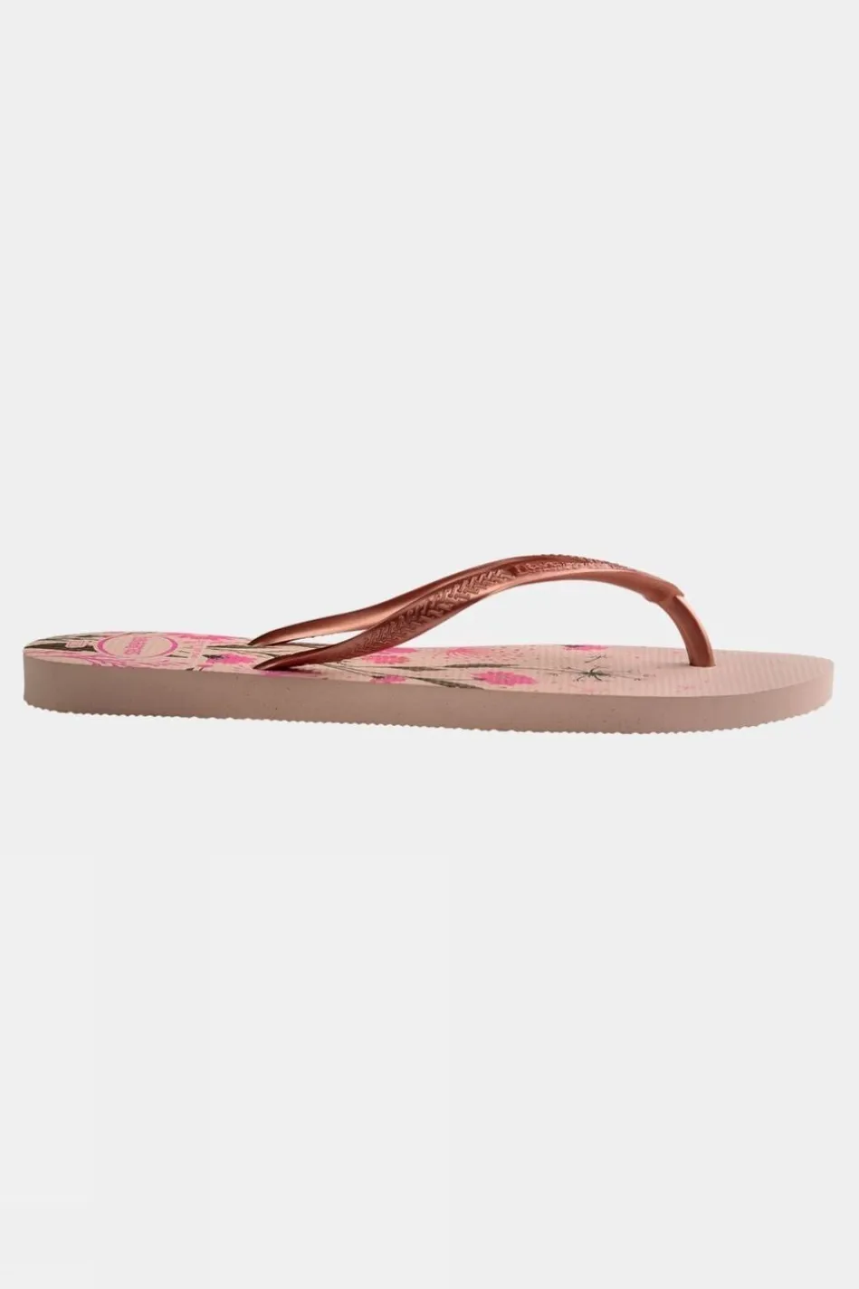 Slim Organic Flip-Flops Are One Of The Most Classic, Ageless Model Of Havaianas. Carrying The Most Perfect Combination Of Floral Prints, Metallic Straps And Beautiful Colours, This Pair Is A Synonym Of Style And Sophistication.