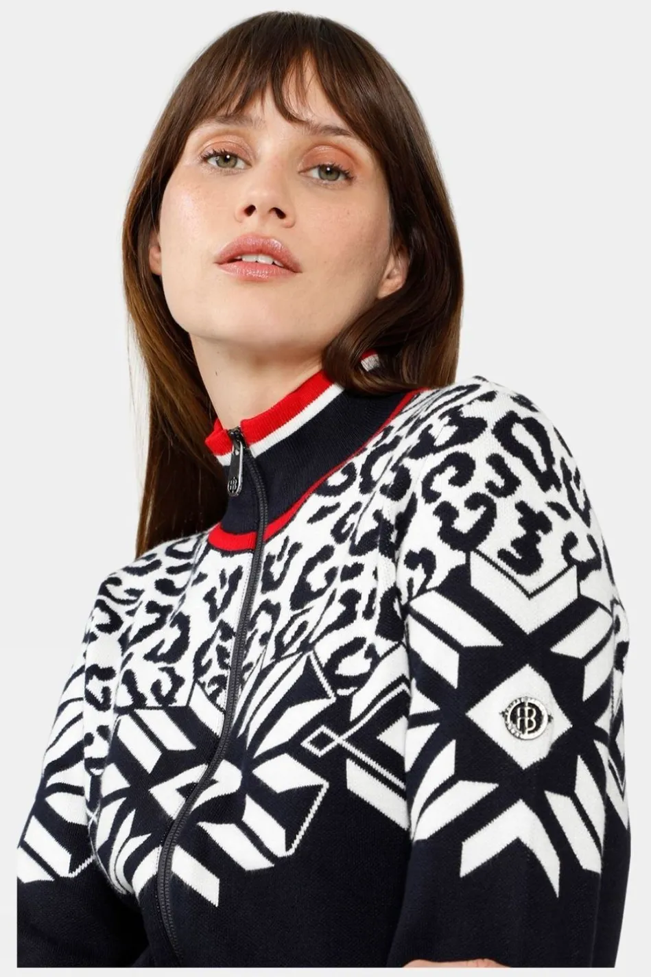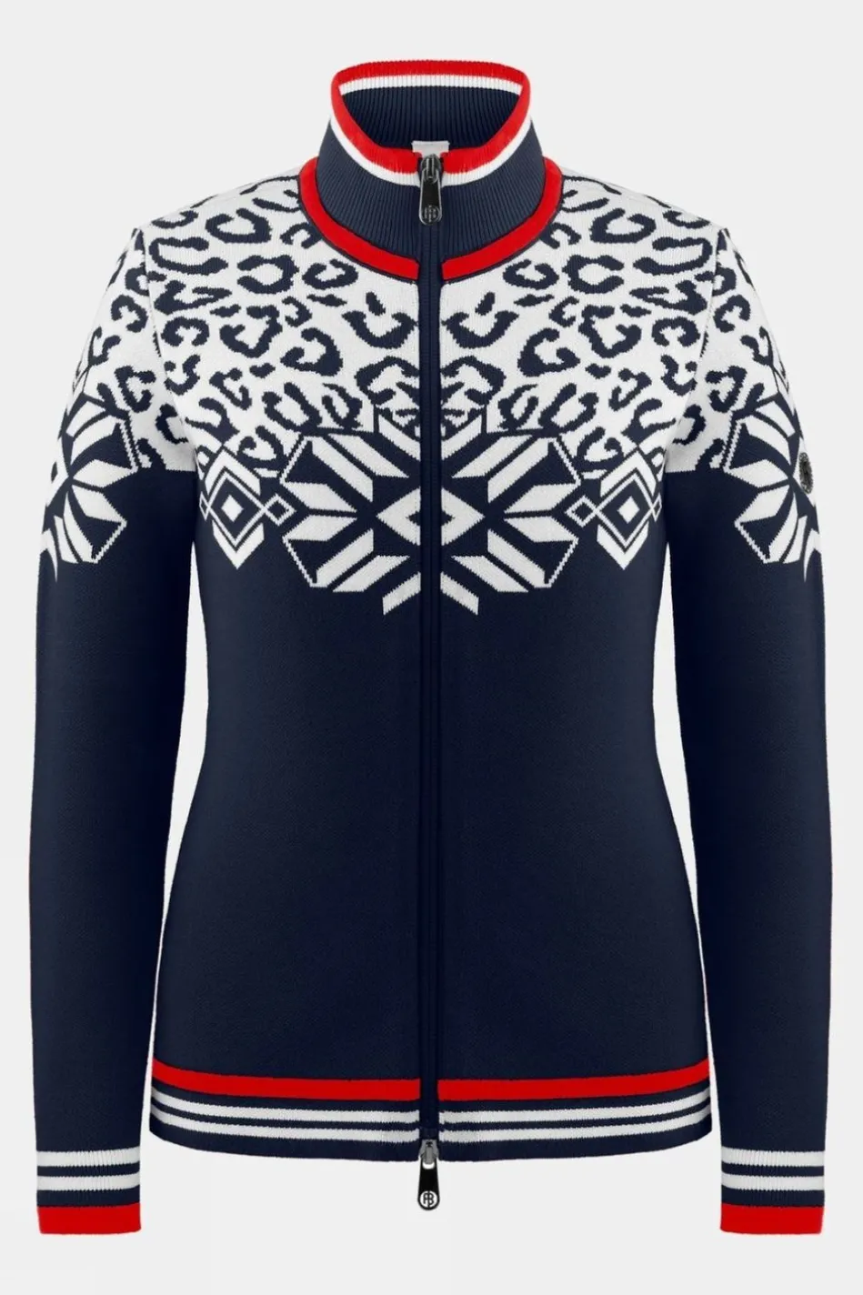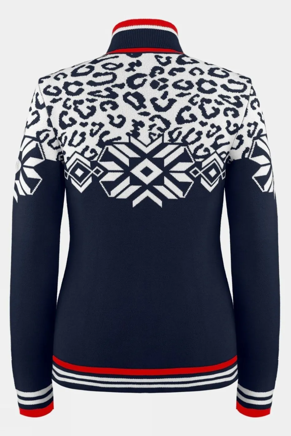 The Ice Crystal And Leopard Design Of This Knit Jacket Makes A Striking Fashion Statement With Sporty Poivre Blanc Character. The Women’s Riva Knit Features Contrasting Stripes And A Distinctive Ribbed Collar Complement Its Dynamic Flair. The Temperature Regulating Properties Of The High-Quality Stretch Knit Fabric Make The Jacket A Perfect Autumn-Winter City Or Ski Resort Piece.