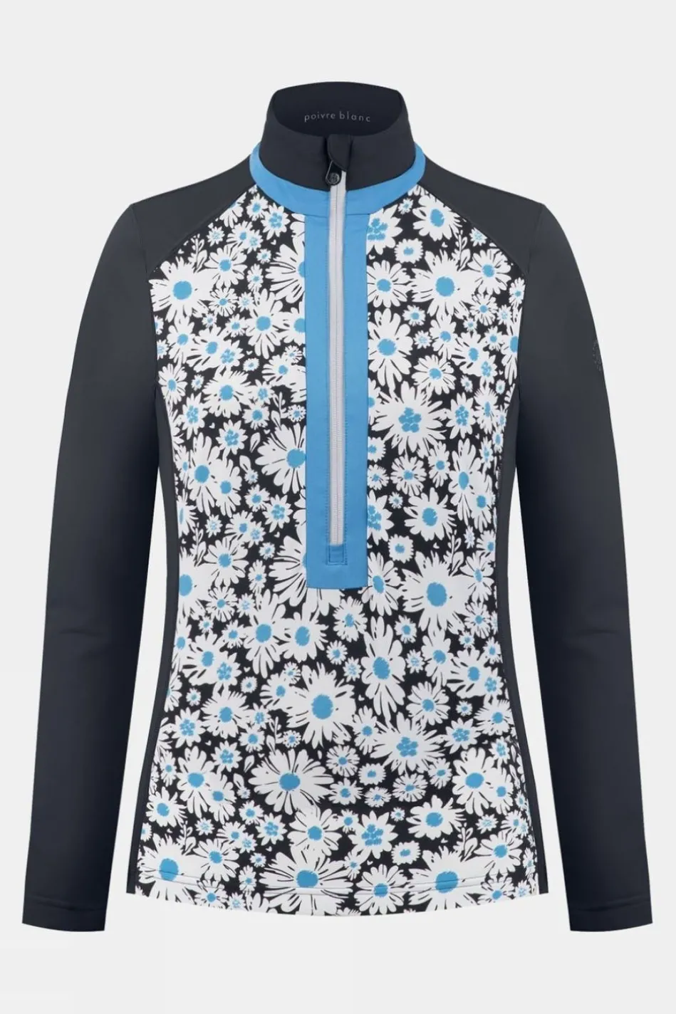 A Lovely New Piece By Poivre Blanc The Womens Printed Stretch Layer Combines Two Various Color Contrasting Styles. The White Minimalistic Or The More Bold In Black Celebrating The Pattern More Daringly On Its Front. The Shirt Has A Practical And Fashionable Quarter Zipped Front, Chin Guard And Heat Transfer Signatures On Its Left Upper Sleeve.