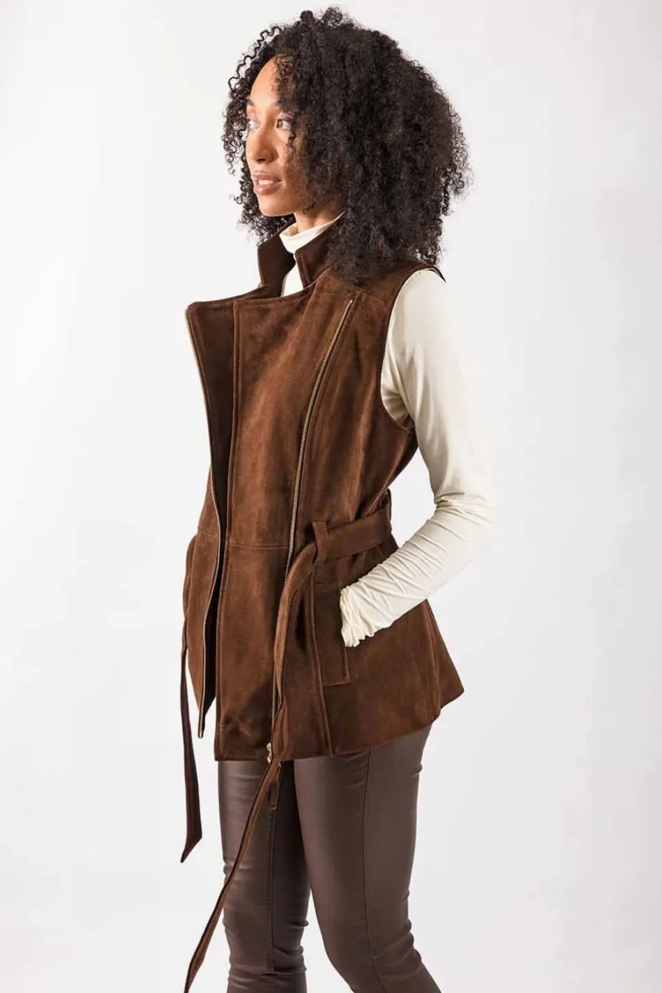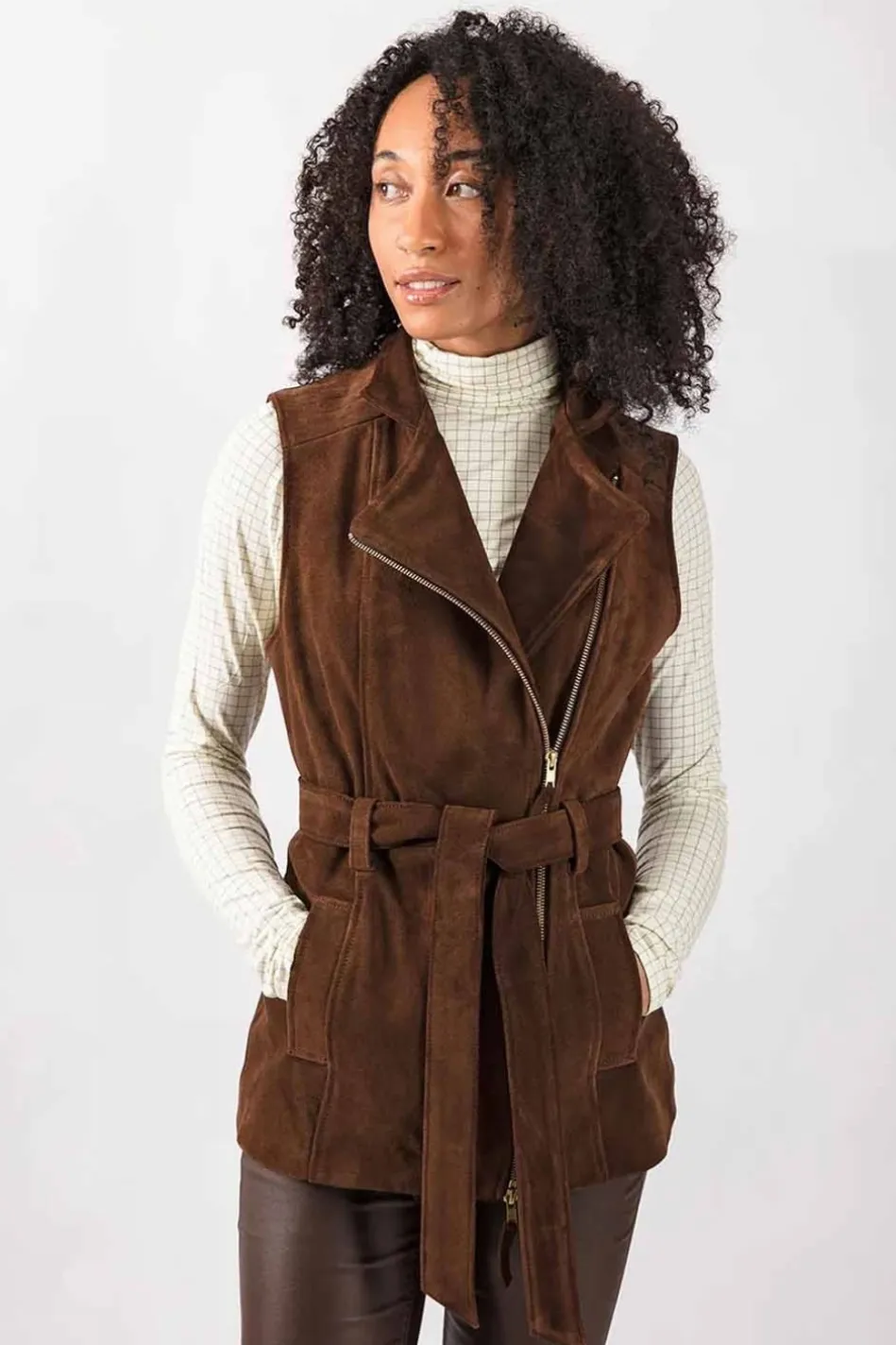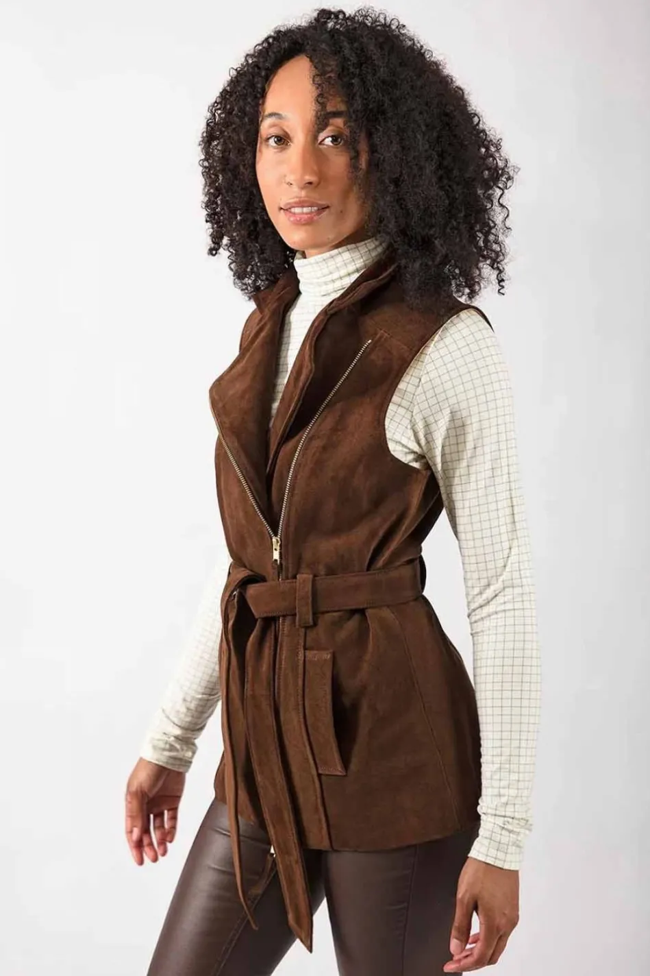 The Troy London Women’s Belted Suede Gilet Is Made From The Softest Italian Suede With The Addition Of A Sustainable Cotton And Viscose Lining For All-Day Warmth And Unbeatablestyle. Secured With A Two-Way Brass Zip And Tied Neatly Around The Waist For A Flattering Silhouette, This Jacket Demands To Be Seen, Be It On City Streets Or Blustery Hills. The Collar Can Be Folded Down Forthe Versatility Of Aflattering V-Neck, And Pulled Up When The Wind Starts To Pick Up To Keep Warmth In. Handmade In Britain, Make This Flattering Gilet Your New Cold-Weather Staple.